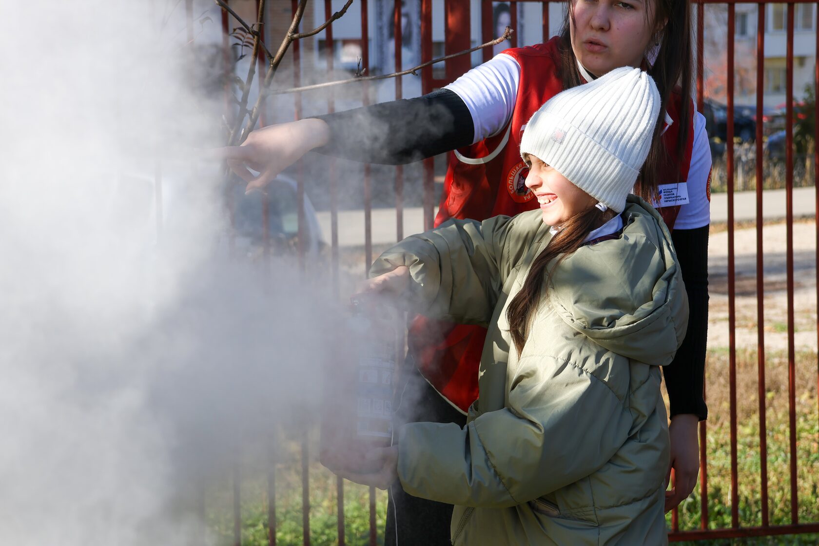 Одним из самых захватывающих этапов занятий стала отработка действий при эвакуации из задымленного помещения. Организаторами были созданы условия, максимально имитирующие реальное возгорание. Разумеется, был использован абсолютно безопасный сценический дым. Такой опыт наглядно продемонстрировал ребятам всю опасность нахождения в зоне задымления.